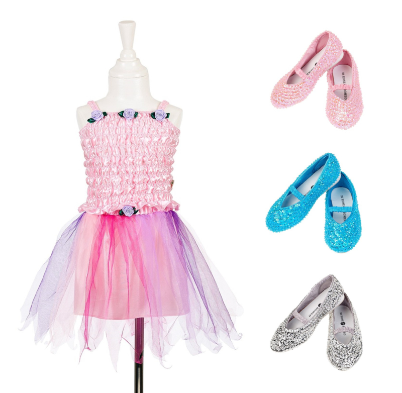 Lief Prinsessen Setje Jalissa met Topje en rokje in roze en paars met roosjes afgezet +