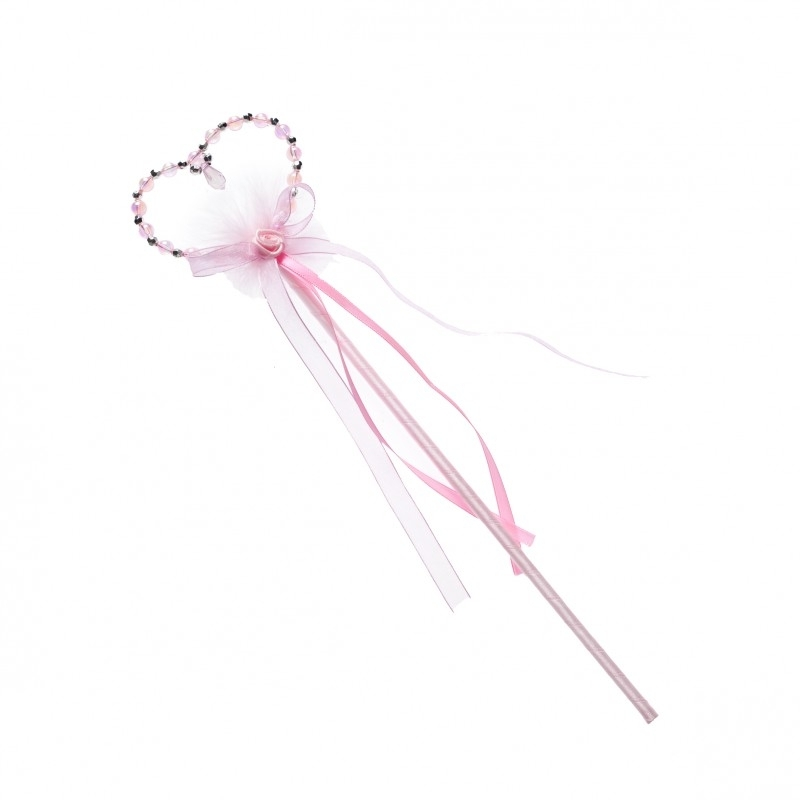 Stafje prinses Libby Hart – lief stafje voor bij een prinsessenjurk met een roze hart, roosje, kraaltjes, veertjes en linten.