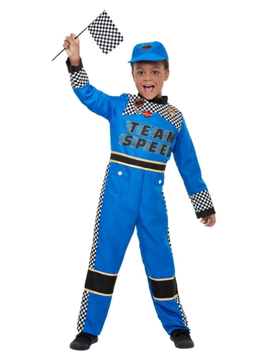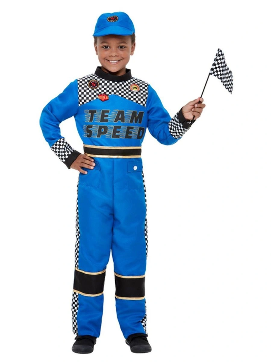 Smiffys Formule 1 – Jumpsuit & Pet – Blauw – Mt.140/152