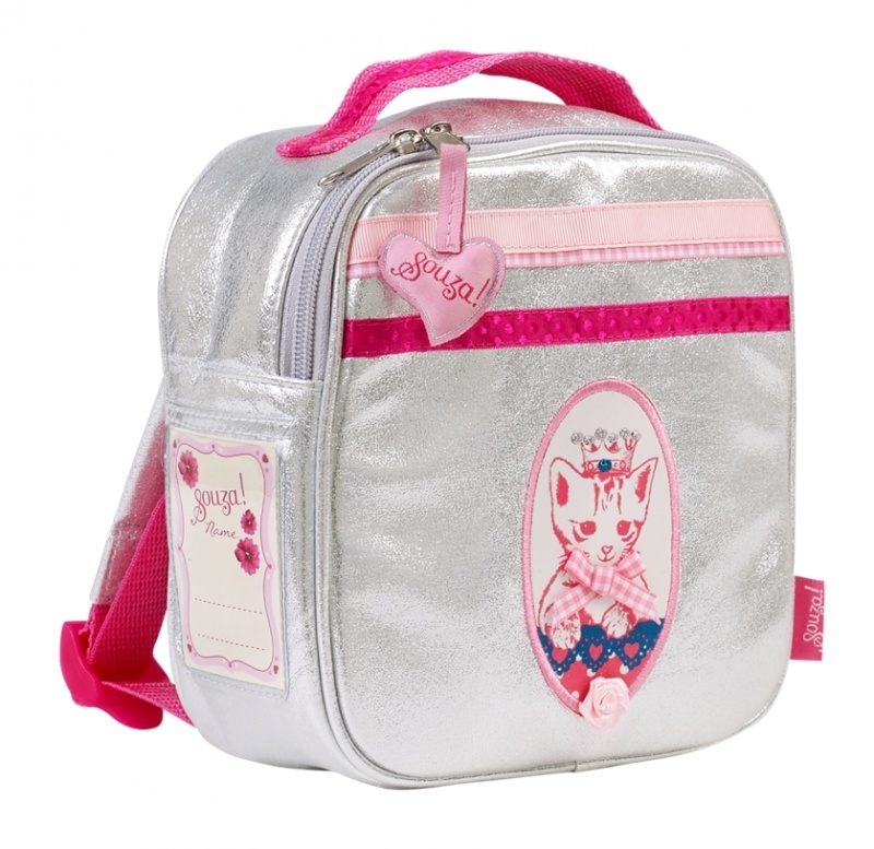Lief roze rugtasje voor kids van Souza for Kids! Het tasje met roze Glitter Hart heeft een groot hoofdvak met rits, verstelbare schouderbanden en een lus aan de bovenzijde om te dragen. Ook heeft het aan de zijkant een naamvak.