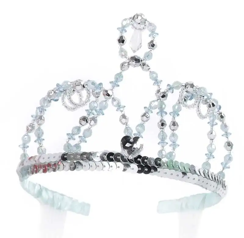 Mooi luxe Prinsessen Kroontje met bling bling steentjes in zilver/blauw, pailletten en lint afwerking zilver. Past erg goed bij een prinsessenjurk, assepoester jurk!